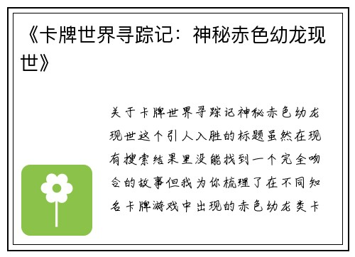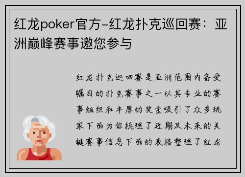 关于红龙扑克(Red Dragon Poker)平台及其官网的情况,网络上的信息比较繁杂。为了帮助你清晰地了解,我将目前能找到的公开信息整理成了下面的表格,你可以快速了解其宣称的特点和一些需要注意的地方。红龙app官ߵ...